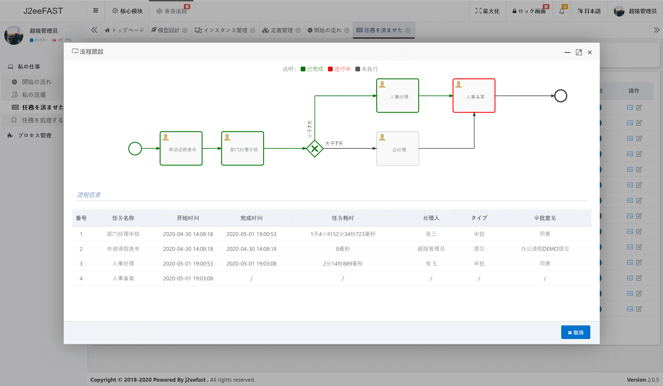 完善的工作流模块分库管理,基于Flowable 生来具有稳定的工作流引擎,一系列智能化封装极大简化BPM工作流的开发。 通过流程在线设计器在线画流程、在线配置表单、你只需要关心表单的设计.J2eeFAST 通过Rabbitmq 实现核心业务用户权限与Flowable 用户权限同步处理、无需改动Flowable表结构无需增加视图,Flowable升级灵活,对业务没有任何影响!